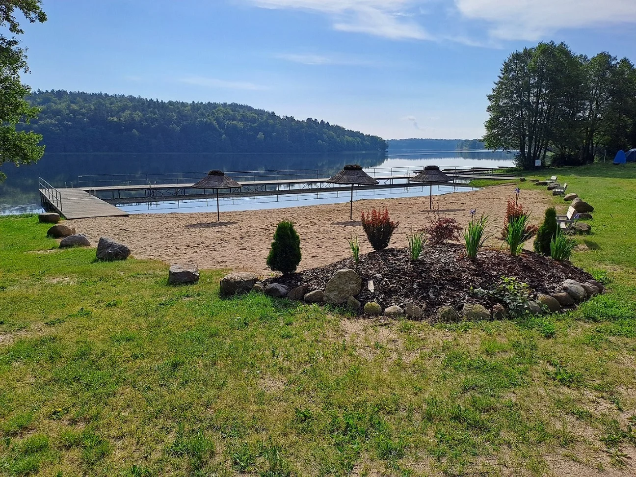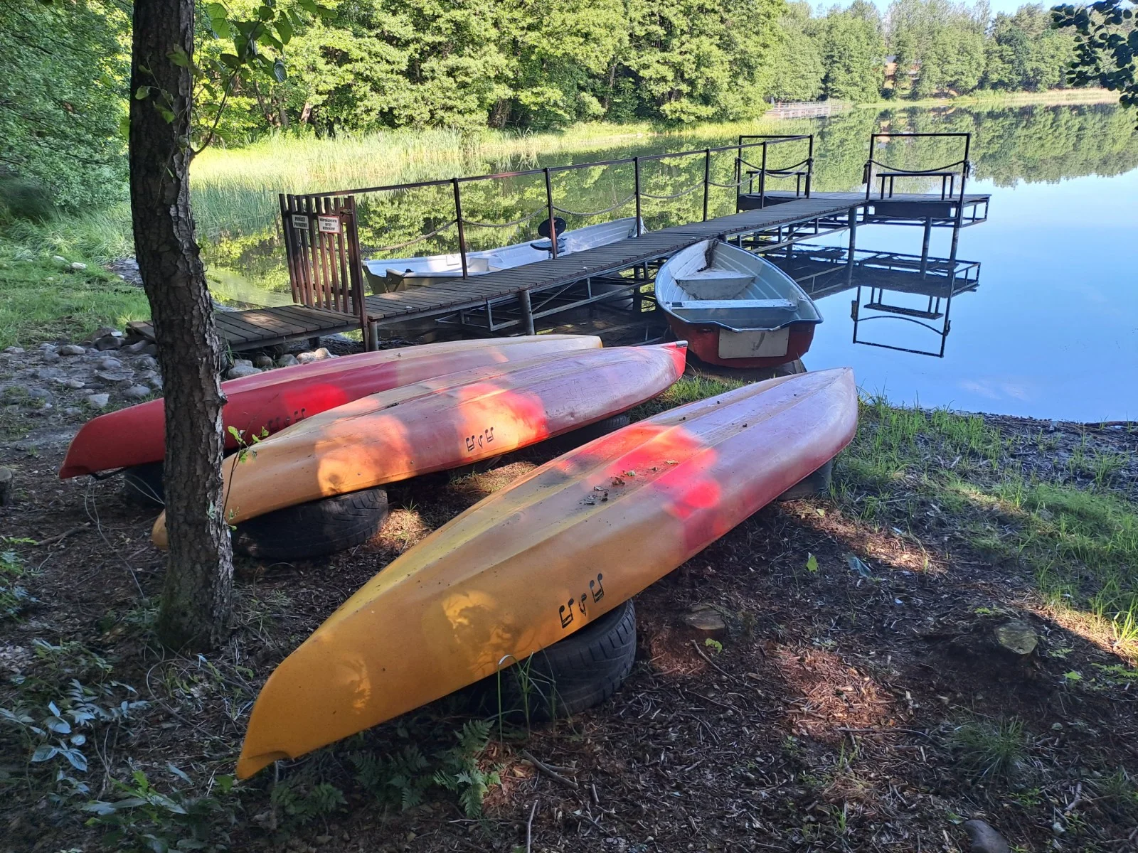 📍 Nad jeziorem Głębokim, 200m do pomostu, 300m do plaży Pobyt kwiecień–październik. Domki na samodzielnych posesjach z ogrodzeniem i parkingiem. 200m do prywatnego pomostu (łódki, kajaki), 300m do kąpieliska z piaszczystą plażą. Basen (sezon letni), klimatyzacja, wędzarnia. Grill, huśtawki, place zabaw, wifi. Dowóz posiłków z barów/pizzerii. Spływy kajakowe Brdą, trasy rowerowe, Morze 80km.