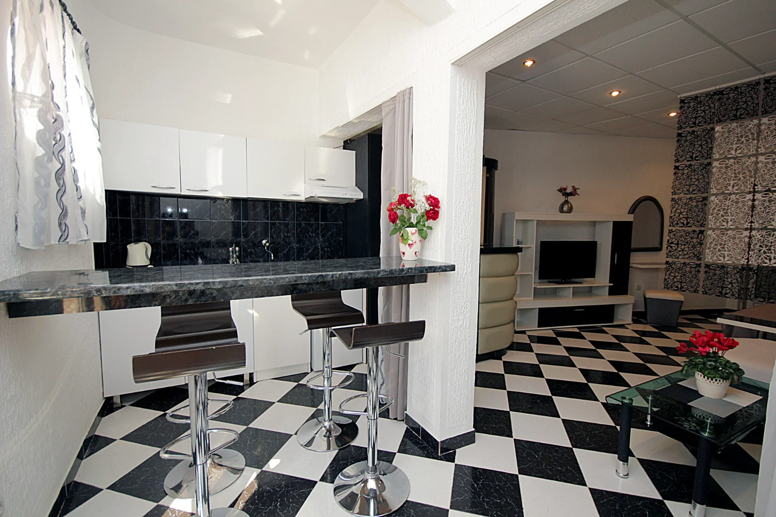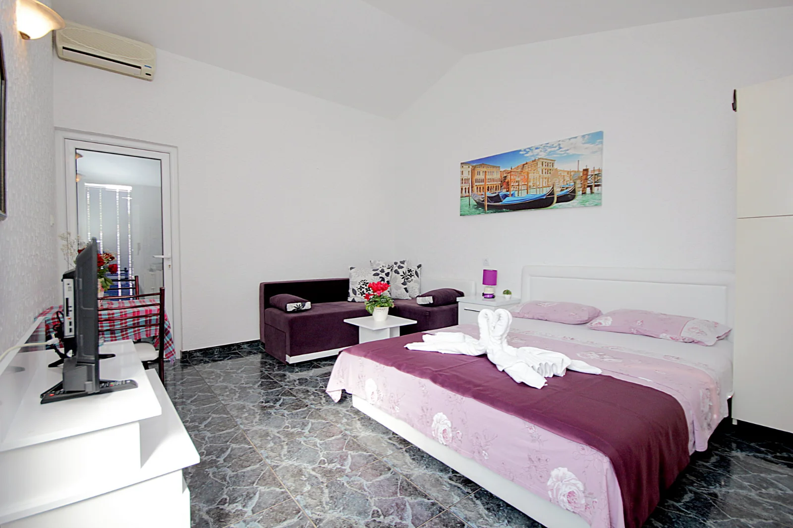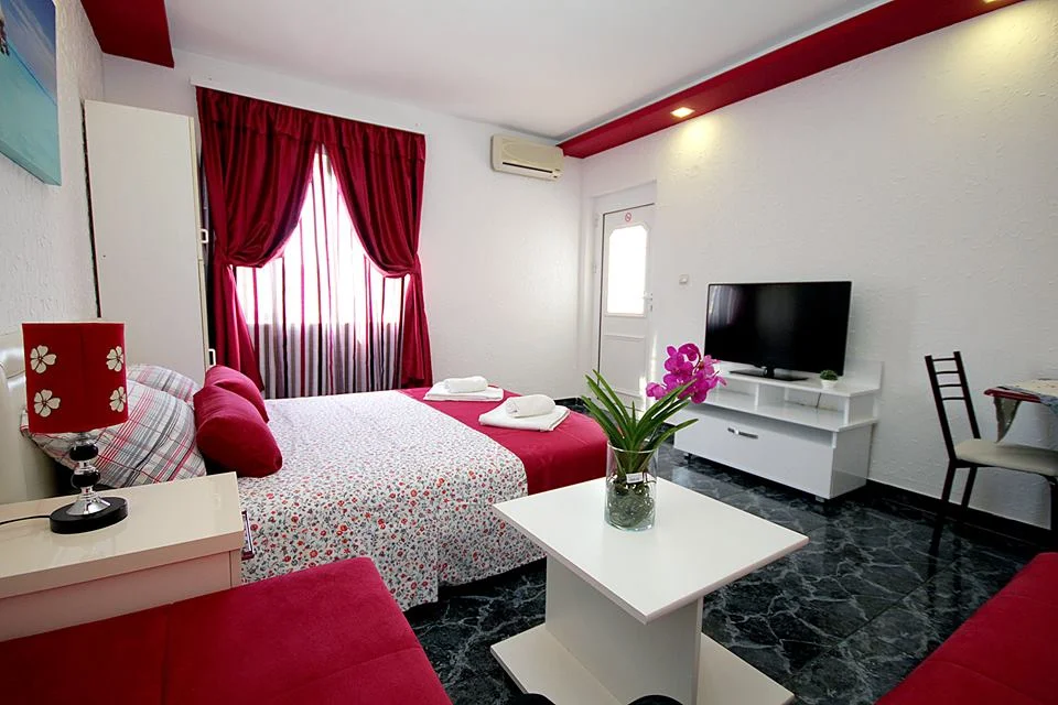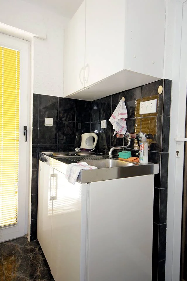 📍 950 m od plaży, 60 m od supermarketu Apartamenty typu studio i z sypialnią w Sutomore. Klimatyzacja, WiFi, aneks kuchenny, sejf, grill na tarasie. Plaża 950m, supermarket 60m. Sprzątanie końcowe 30€.
