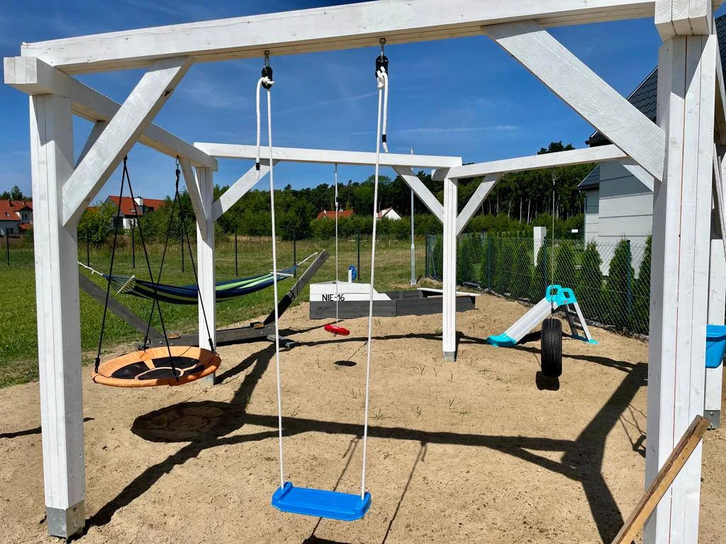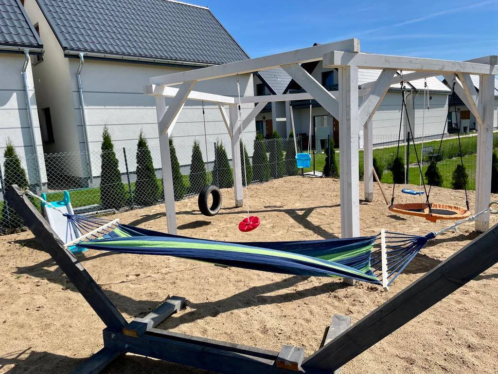 📍 Nad morzem, ogrodzony teren Przestronne domki 65 m² z 2 sypialniami i aneksem kuchennym. W pełni wyposażona kuchnia (zmywarka, ekspres, kuchenka indukcyjna). Ogrodzony teren, taras, plac zabaw dla dzieci, hamaki, sprzęt do grillowania.