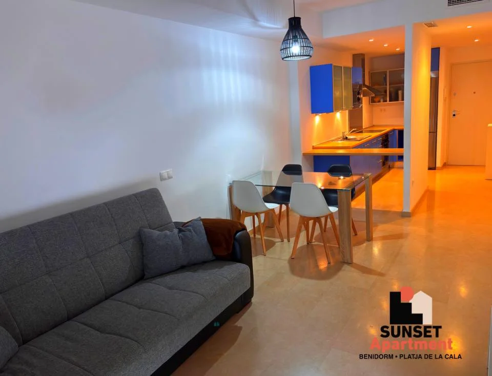 📍 Residential Cala Alta, Carrer Marinada 1 bis (3 min do Platja de La Cala) Nowoczesny apartament 55 m² na zamkniętym osiedlu. 3 min do plaży Platja de La Cala. Taras 20 m², garaż podziemny w cenie. Smart TV, światłowód 300 Mb/s, pełna kuchnia, pralka, suszarka, klimatyzacja. Idealny na wypoczynek lub home office.