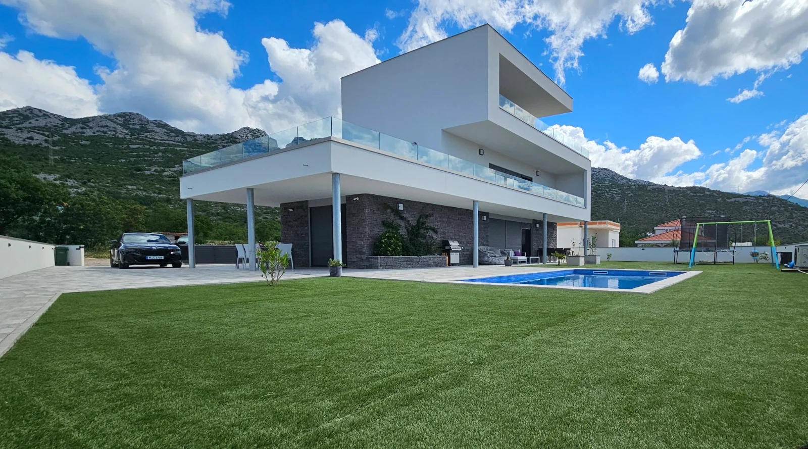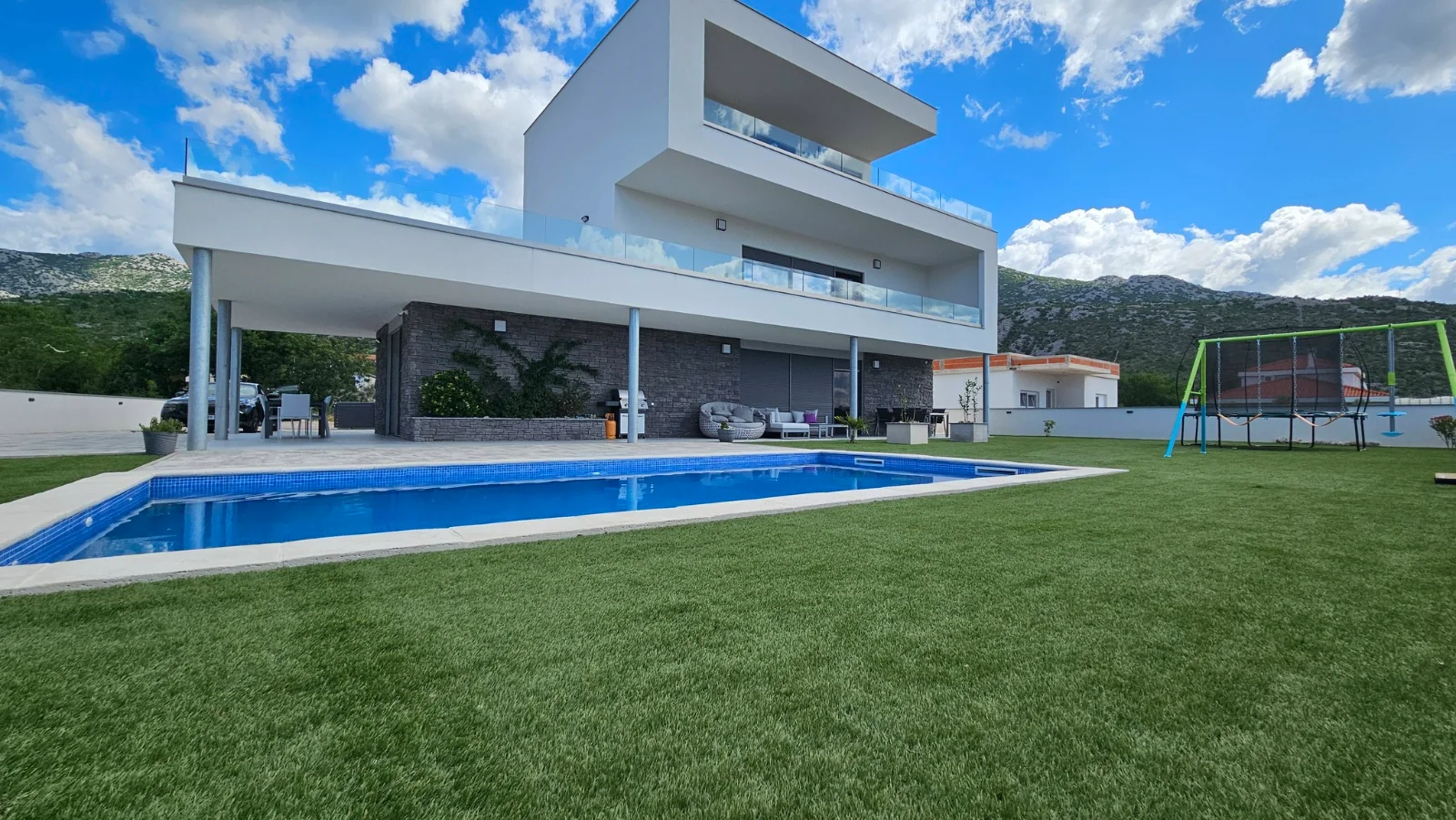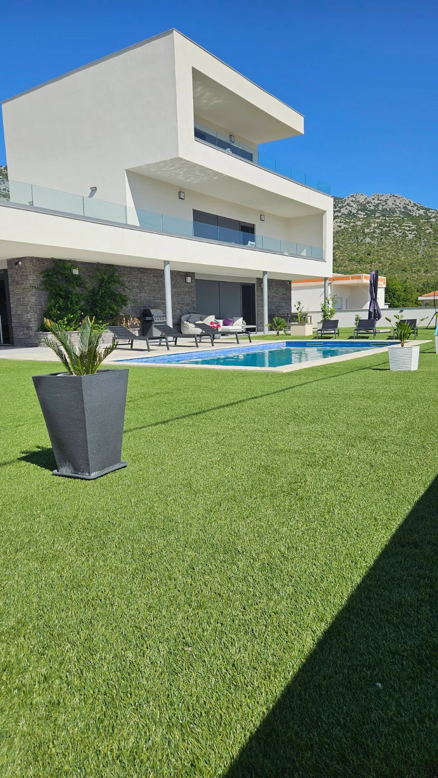 📍 30 min od Zadaru, żwirowa plaża 250 m Luksusowy dom dla 16 osób. Podgrzewany basen, 2 jacuzzi. Seline Chorwacja otwarta na rezerwacje w 2026 roku! Minimum 7 nocy. Żwirowa plaża w odległości 250 m. 4 łazienki, klimatyzacja, Wi-Fi. 4 kuchnie z lodówką, kostkarką do lodu i ekspresem do kawy. Przestronne tarasy, trampolina i huśtawki w ogrodzie. Możliwość grillowania. Bezpłatny parking na terenie posesji. Kajak. Wypożyczalnia łodzi dla 5 osób.