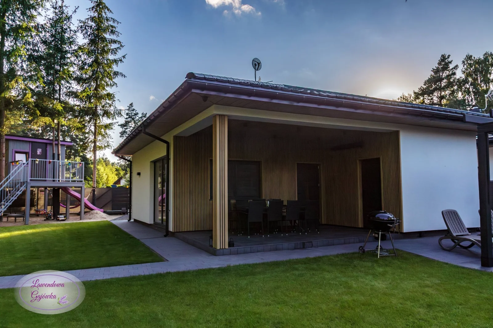 📍 1min do jeziora i lasu Wolnostojący domek 1min do jeziora i lasu. Kominek, trzy sypialnie + salon, aneks kuchenny z pełnym wyposażeniem, łazienka z prysznicem, Wi-Fi, klimatyzacja, miejsce na grill, taras, Jacuzzi + leżaki, plac zabaw.