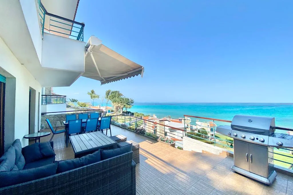 📍 Półwysep Kassandria, Halkidiki Dom z panoramicznym widokiem na morze, 4 sypialnie, 130 mkw. Duża weranda z grillem i stołem. Pełna kuchnia, 2 łazienki (jedna WC), 3 klimatyzatory, zmywarka, pralka.