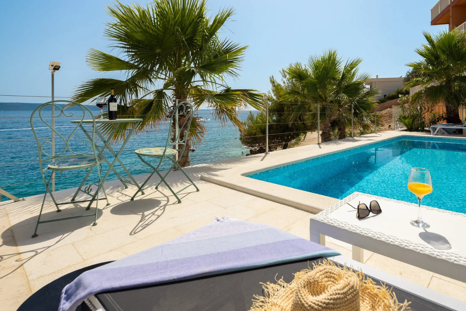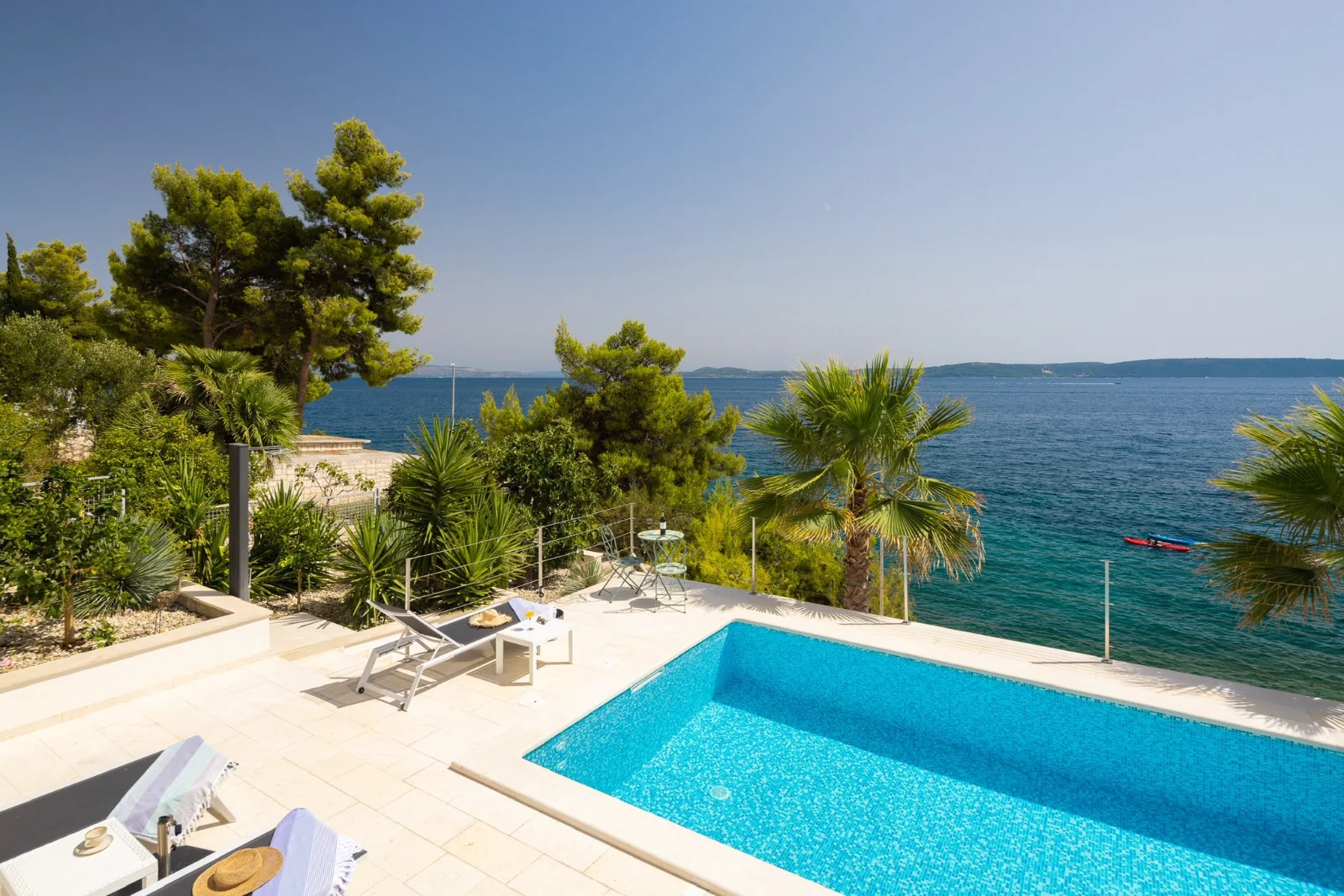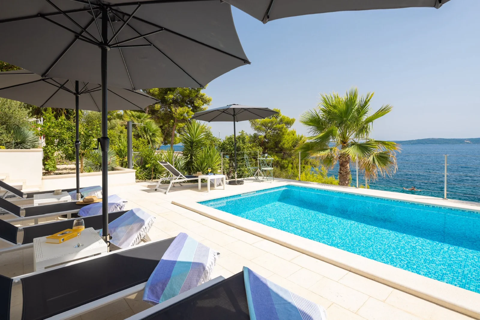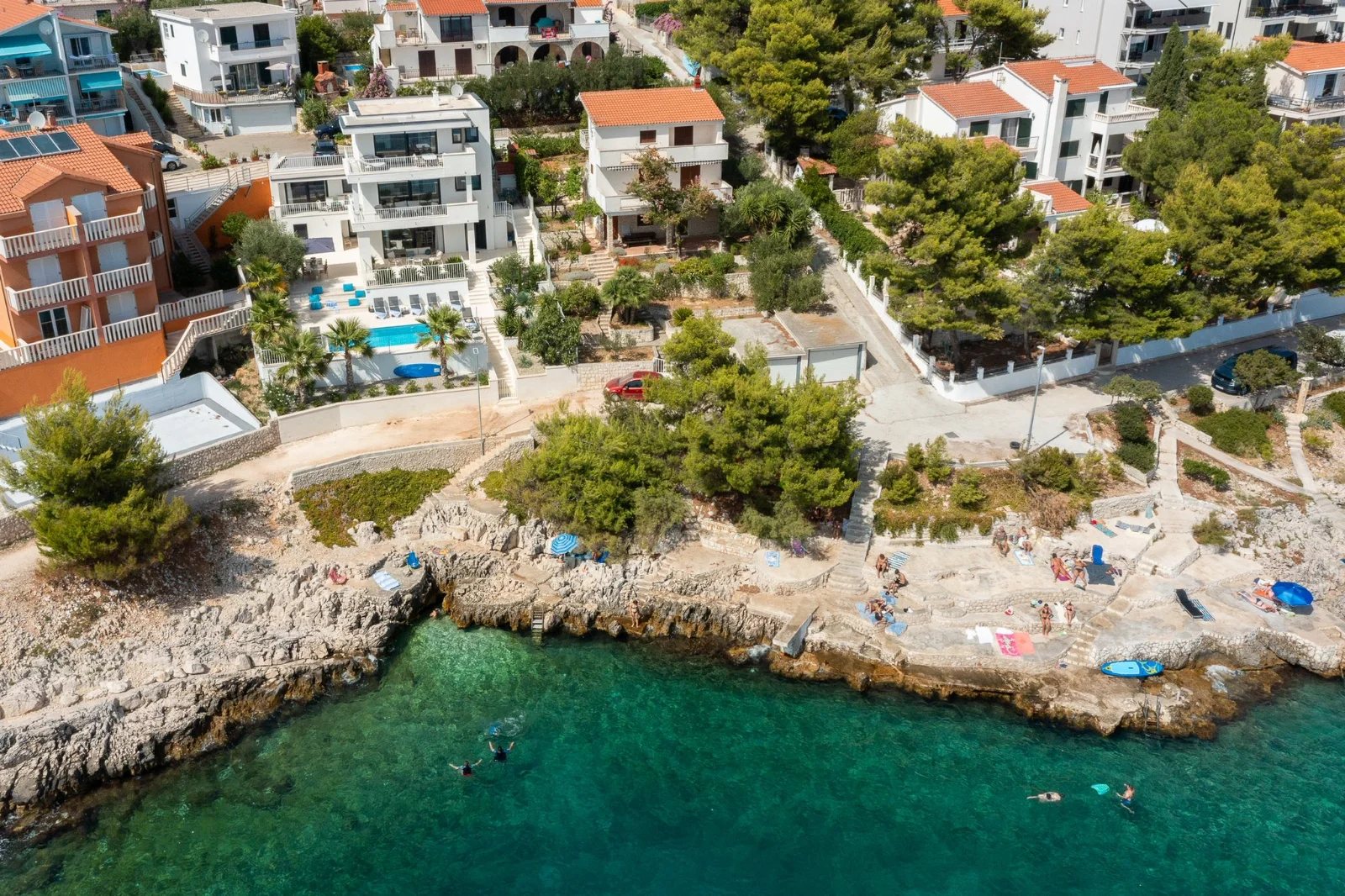 📍 Okrug Gornji, 4km od Trogiru, pierwsza linia brzegowa Willa z podgrzewanym basenem w pierwszej linii brzegowej. Duże tarasy z widokiem na morze i wyspy (Hvar, Šolta). Nowoczesne kuchnie, Wi-Fi światłowód. Ogrodzony teren z ogrodem śródziemnomorskim. Parking dla 3 aut. Grill kamienny. Blisko plaży, barów (300-400m), centrum Trogiru (4km) i lotniska w Splicie (8km). Idealna dla rodzin i grup.