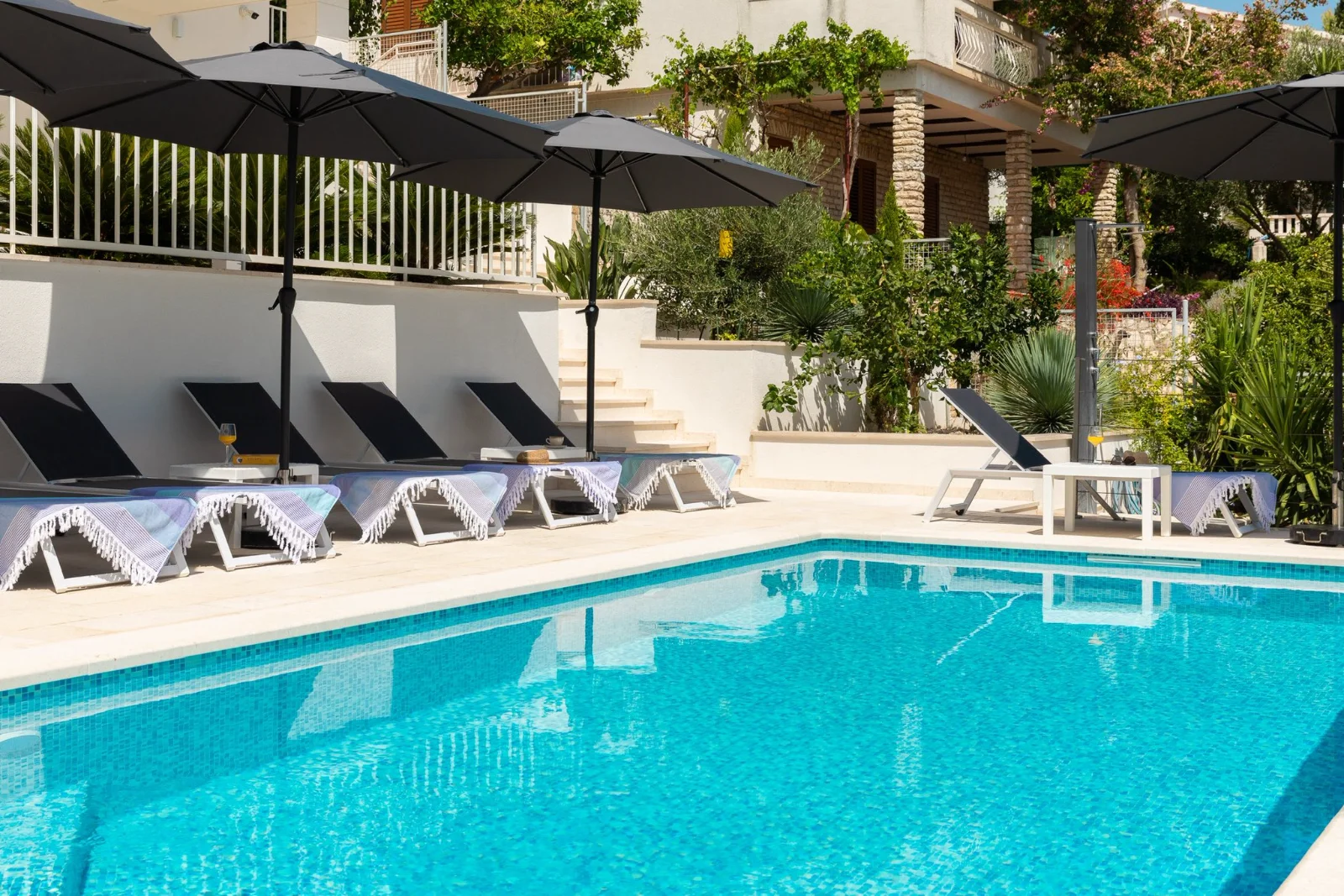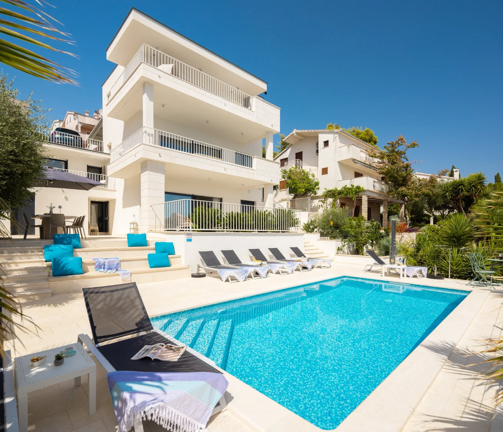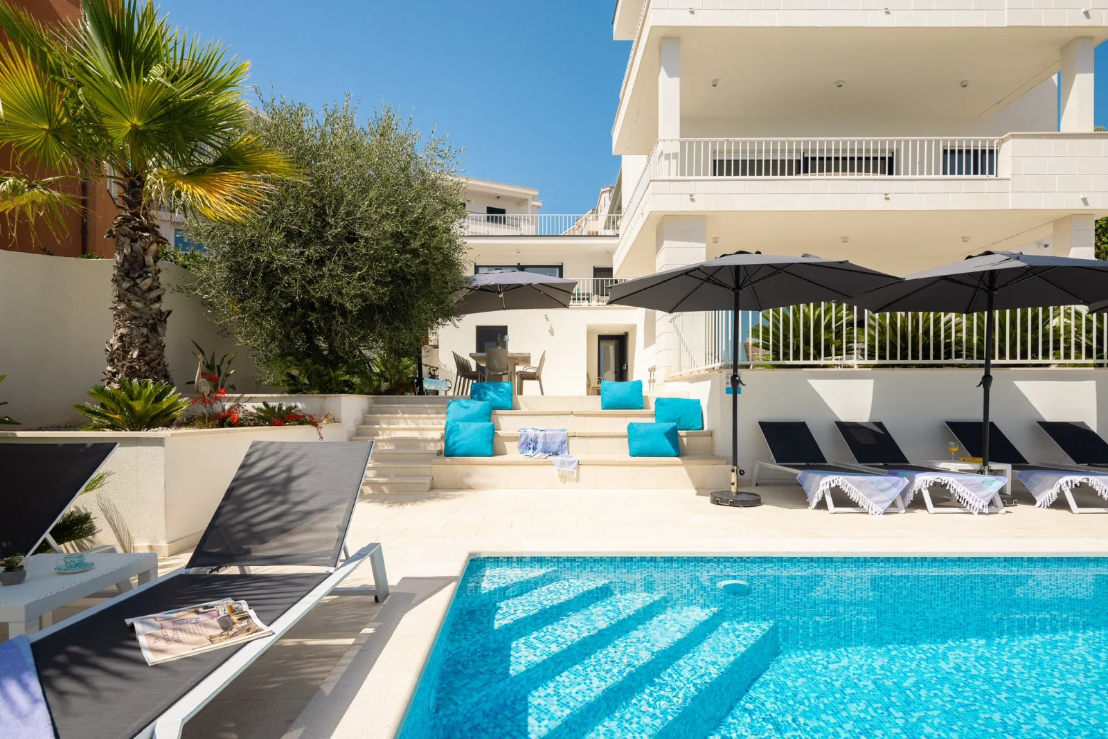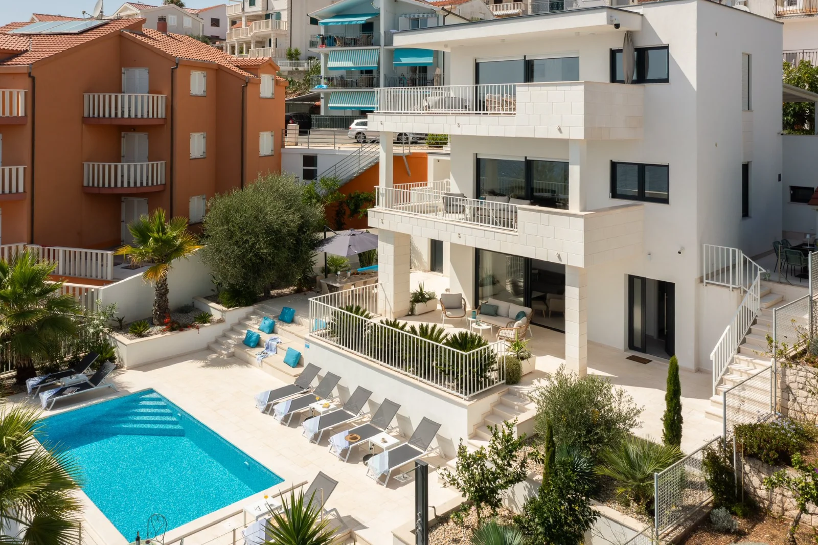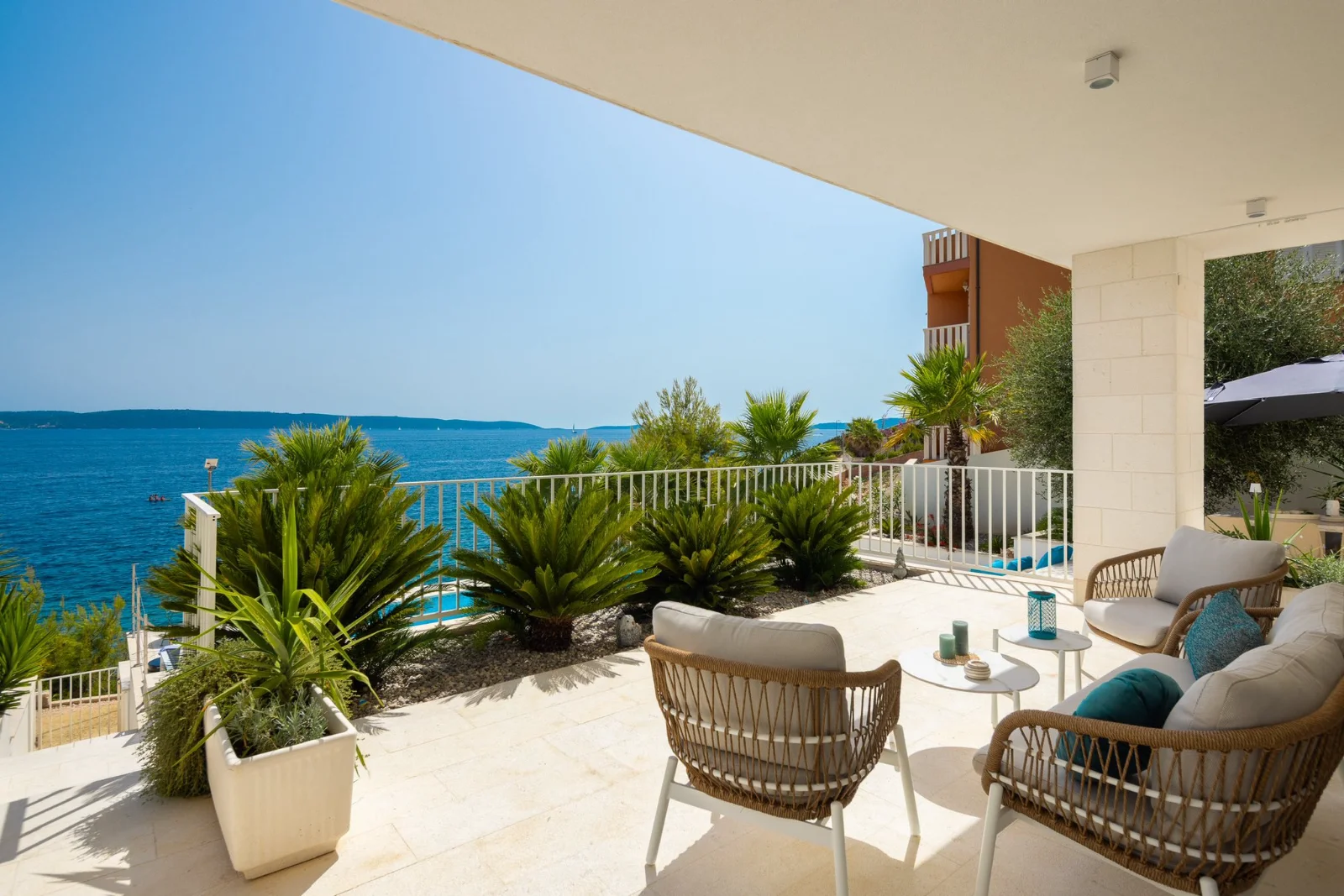 📍 Okrug Gornji, 4km od Trogiru, pierwsza linia brzegowa Willa z podgrzewanym basenem w pierwszej linii brzegowej. Duże tarasy z widokiem na morze i wyspy (Hvar, Šolta). Nowoczesne kuchnie, Wi-Fi światłowód. Ogrodzony teren z ogrodem śródziemnomorskim. Parking dla 3 aut. Grill kamienny. Blisko plaży, barów (300-400m), centrum Trogiru (4km) i lotniska w Splicie (8km). Idealna dla rodzin i grup.
