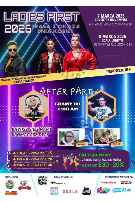 Wielka trasa z okazji Dnia Kobiet! LADIES FIRST w Coventry HMV Empire. Bilety od £30. Wieczór pełen muzyki i zabawy dla polskich pań mieszkających w Coventry i okolicach.