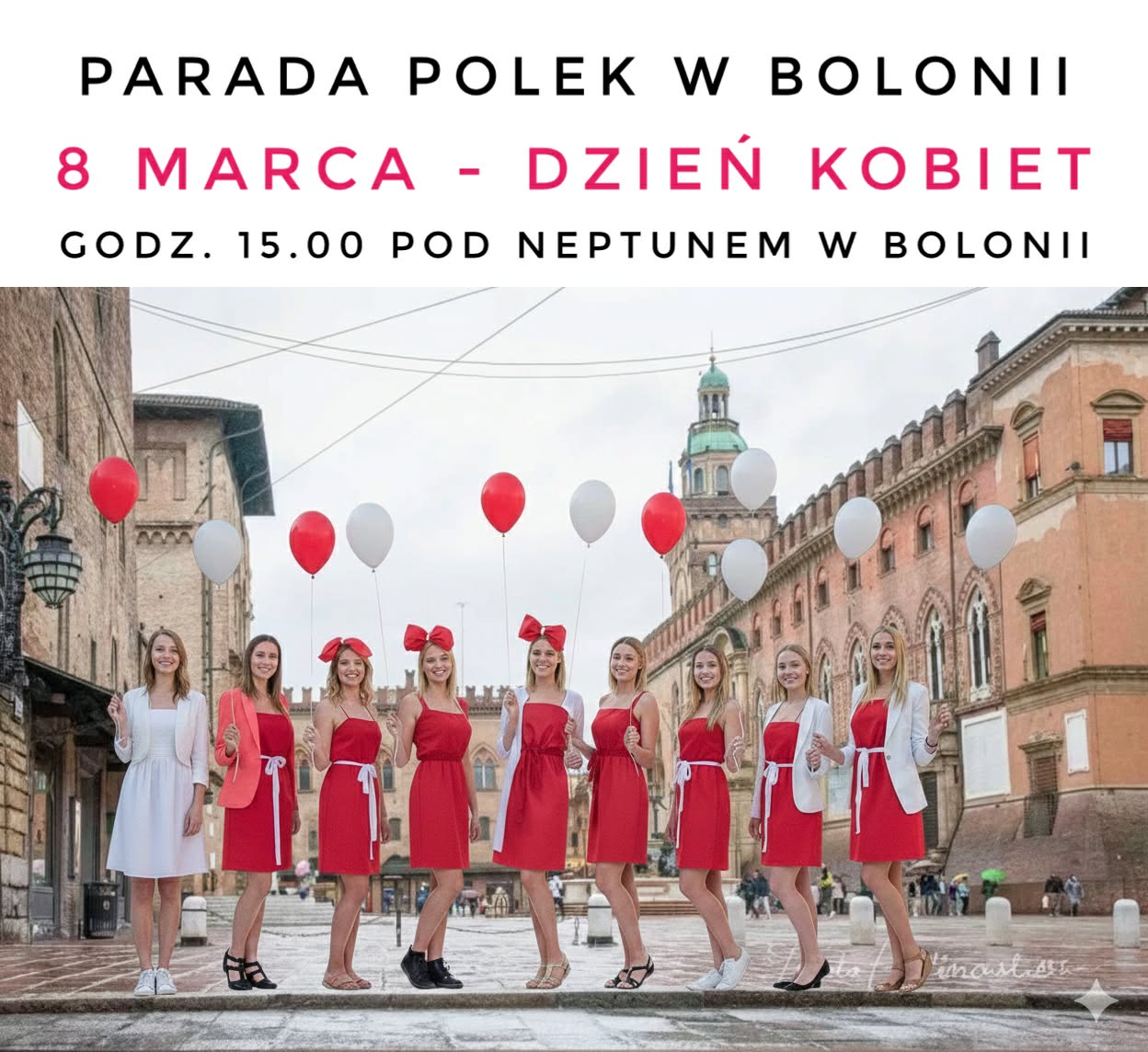 8 marca 2026 roku zapraszamy wszystkie Polki na wyjątkowe spotkanie w sercu Bolonii z okazji Dnia Kobiet!\n\nPolska społeczność organizuje spacer po centrum miasta w polskich kolorach – biało-czerwonych. Baloniki białe i czerwone zapewnione przez organizatorów.\n\nProgram:\n- Wspólny spacer po centrum Bolonii\n- Wspólne zdjęcia na pamiątkę\n- Toast za wszystkie Polskie Kobiety za granicą\n\nOrganizatorzy zachęcają do przyniesienia kwiatów typowych dla polskiego Dnia Kobiet. Wydarzenie współorganizowane z Fotograf we Włoszech – Bella Italia.\n\nWspaniała okazja do integracji polonijnej i celebrowania polskich tradycji na włoskiej ziemi!