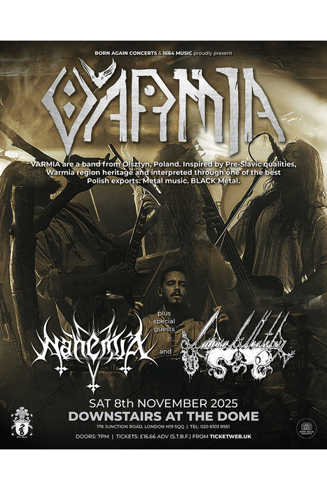 Przygotuj się na noc pełną rytuału, furii i mroku – trzy potężne siły ekstremalnego metalu spotkają się na jednej scenie w Londynie. Głównym gwiazdorem jest polski zespół VARMIA z Warmii, łączący dzikość black metalu z etnicznym brzmieniem pruskim i bałtyjskim.