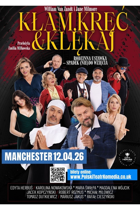 Spektakl komediowy "Kłam, kręć i klękaj" w Manchesterze