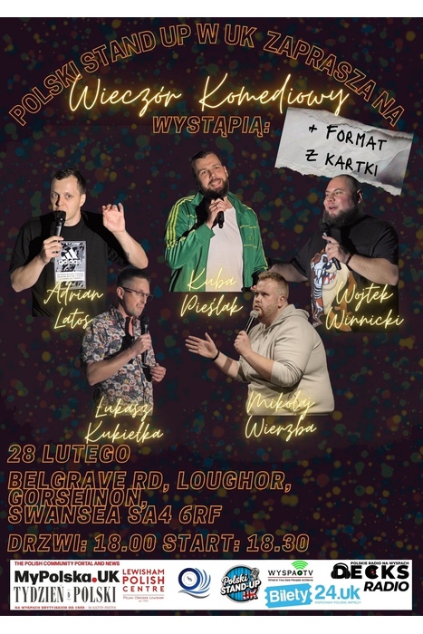 Polski wieczór komediowy w Swansea! Śmiech i dobra zabawa gwarantowane. Bilety od 19 funtów.